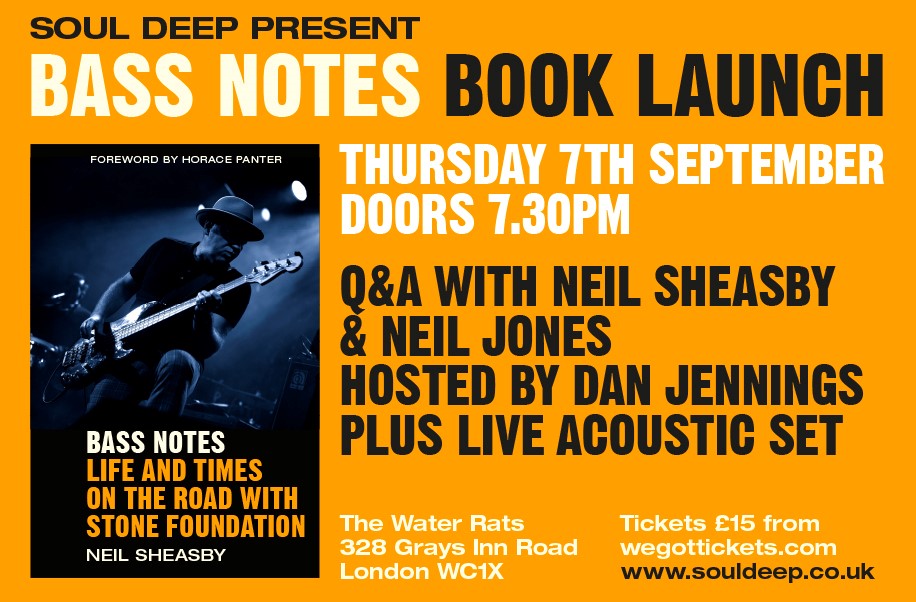 Neil will be in conversation with Dan Jennings talking about his life with the acclaimed soul collective Stone Foundation and why he made Bass Notes into a book. He will also be joined by his friend and fellow band member, Neil Jones and they will play a selection of SF songs acoustically.