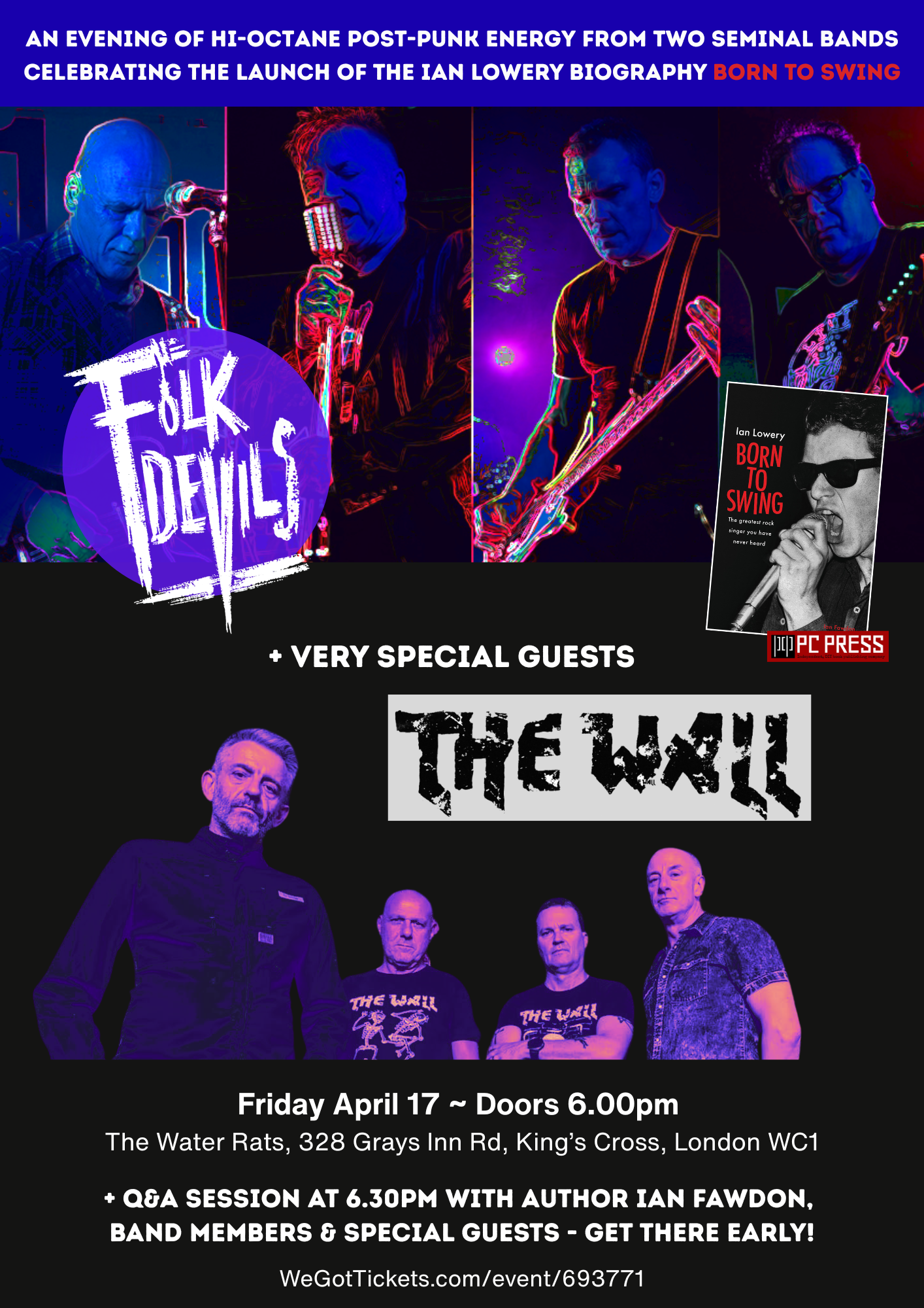 An evening of hi-octane post-punk energy from two seminal bands celebrating the launch of the Ian Lowery biography ‘Born To Swing’.