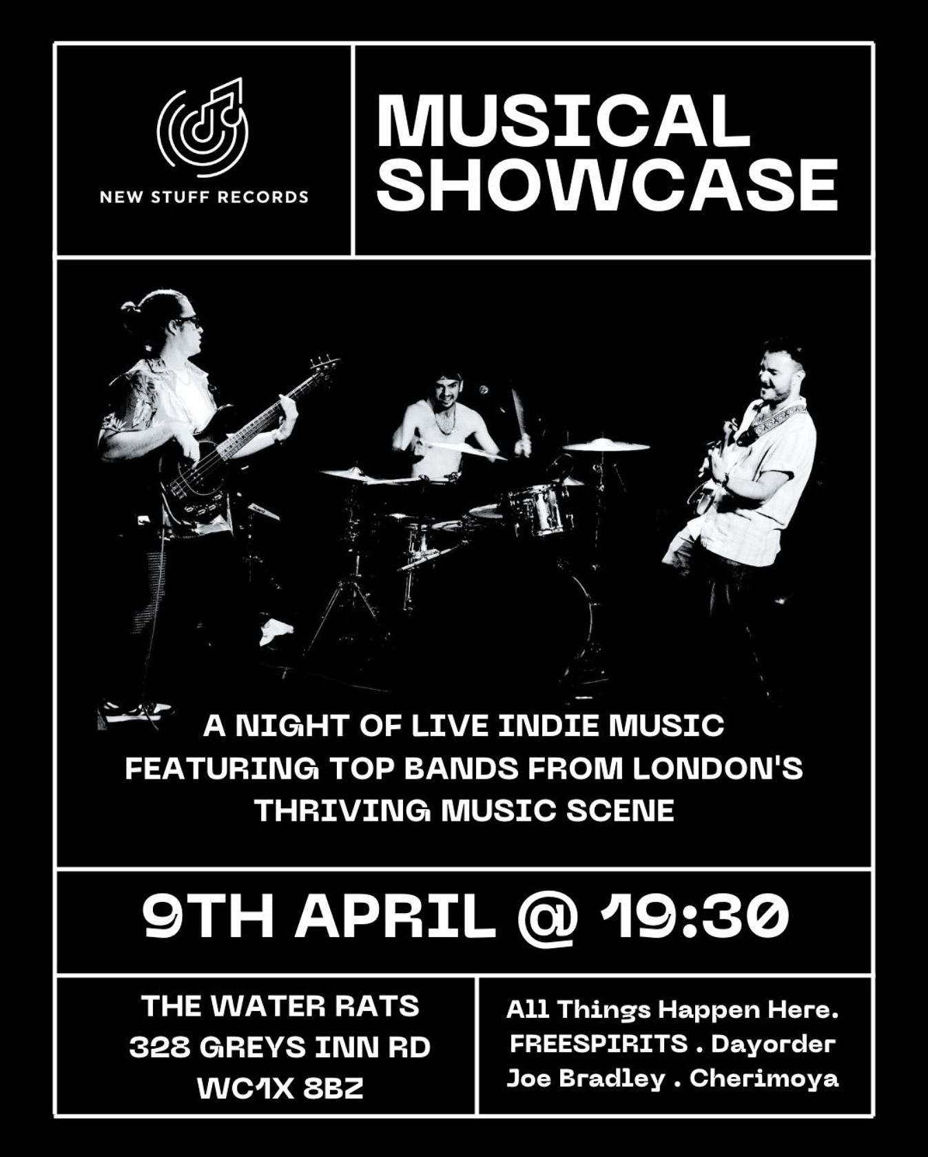 Join New Stuff Records for an unforgettable Musical Showcase at the legendary Water Rats in the heart of London. Prepare to embark on an extraordinary journey through sound and emotion as five outstanding independent artists take the stage, each offering their unique style and mesmerising performances.