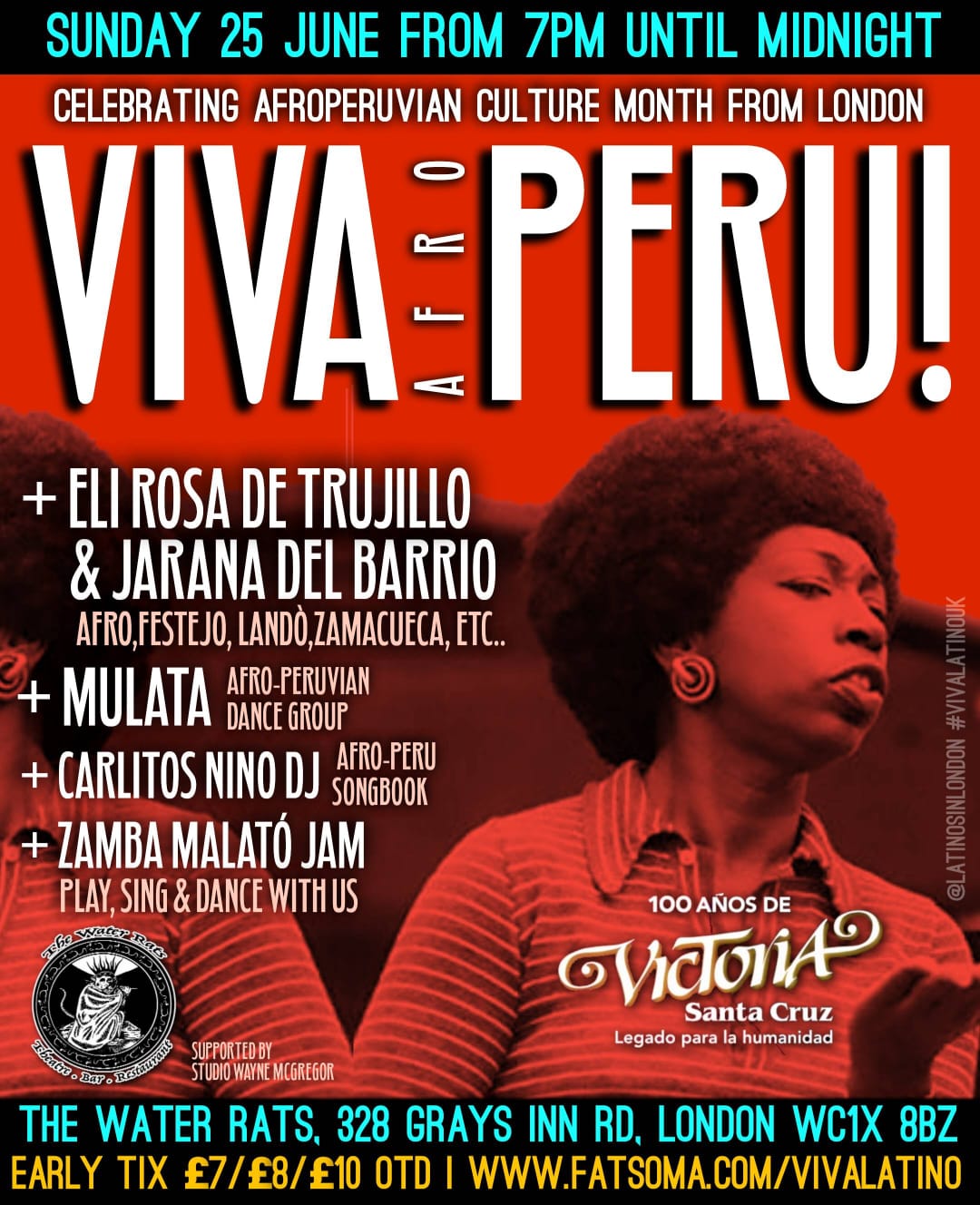 Welcome everyone to Viva Peru! We are back celebrating Afro-Peruvian history month in London. The event will showcase Afro Peruvian traditional live music and dance, and closing jamming involving the audience on stage and the dancefloor. Join us and immerse yourself into this amazing culture and their people from Peru.