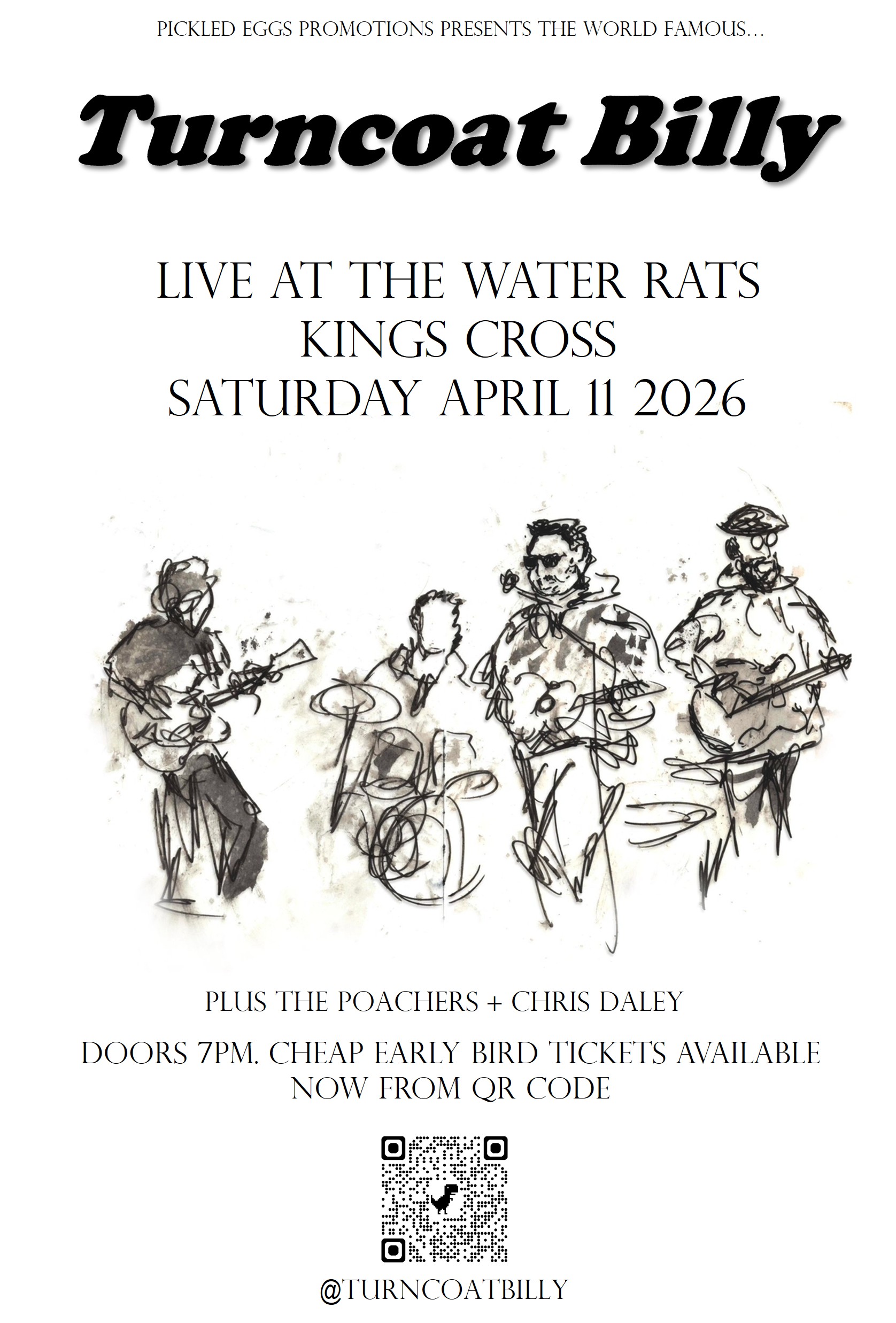 Walthamstow favourites Turncoat Billy bring their unique ‘Bloke Folk’ genre down the Victoria Line for their first headline show in central London following a busy 2025 which saw capacity crowds at Signature Brew and support slots for sell out shows with The Rifles and more Christmas nonsense. Expect thigh slapping singalongs, pickled eggs and the night of your life. In support travelling down from Glasgow are The Poachers and London’s finest troubadour Chris Dale.